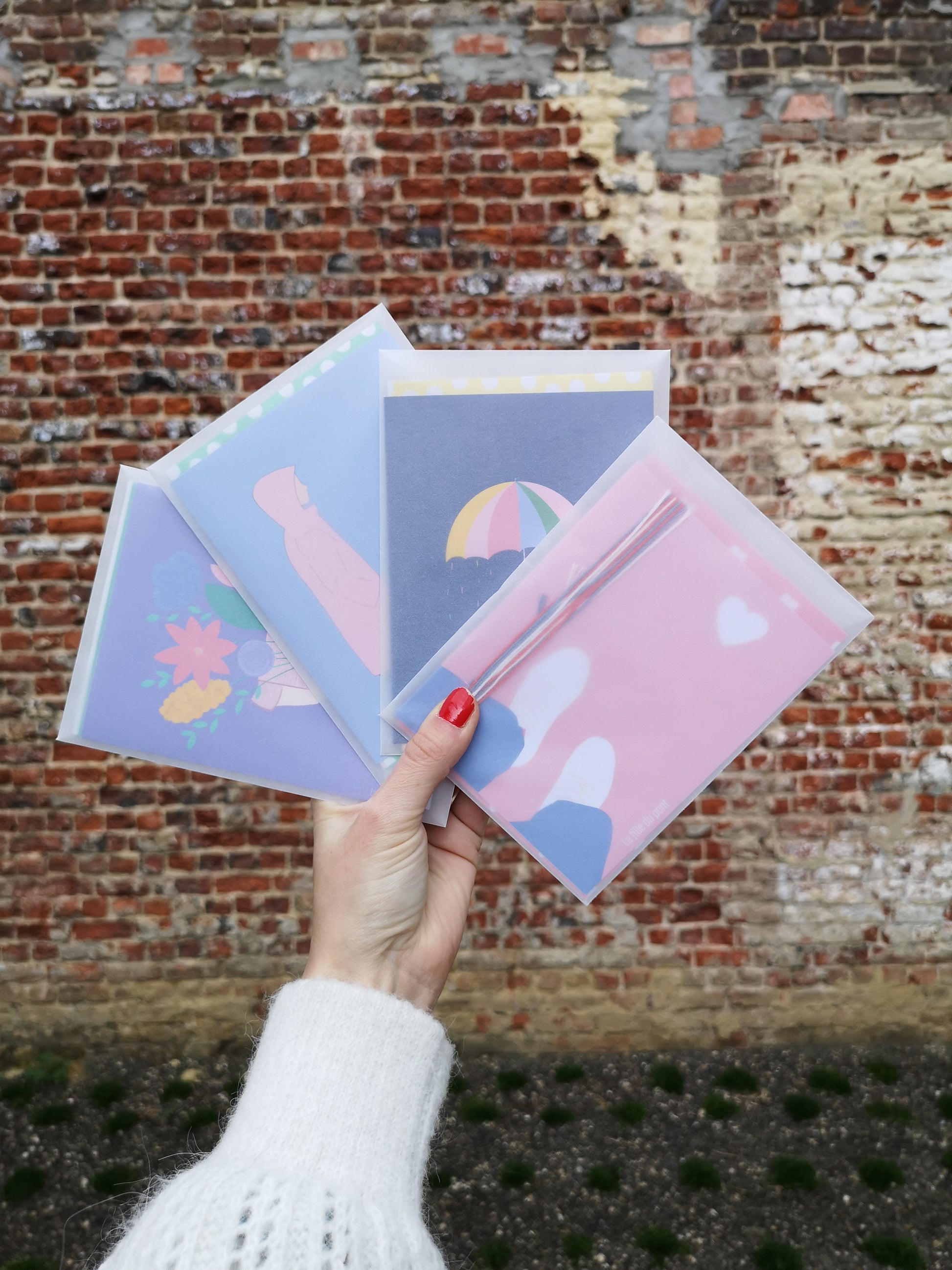- une illustration sur carte de correspondance imprimée sur un papier texturé