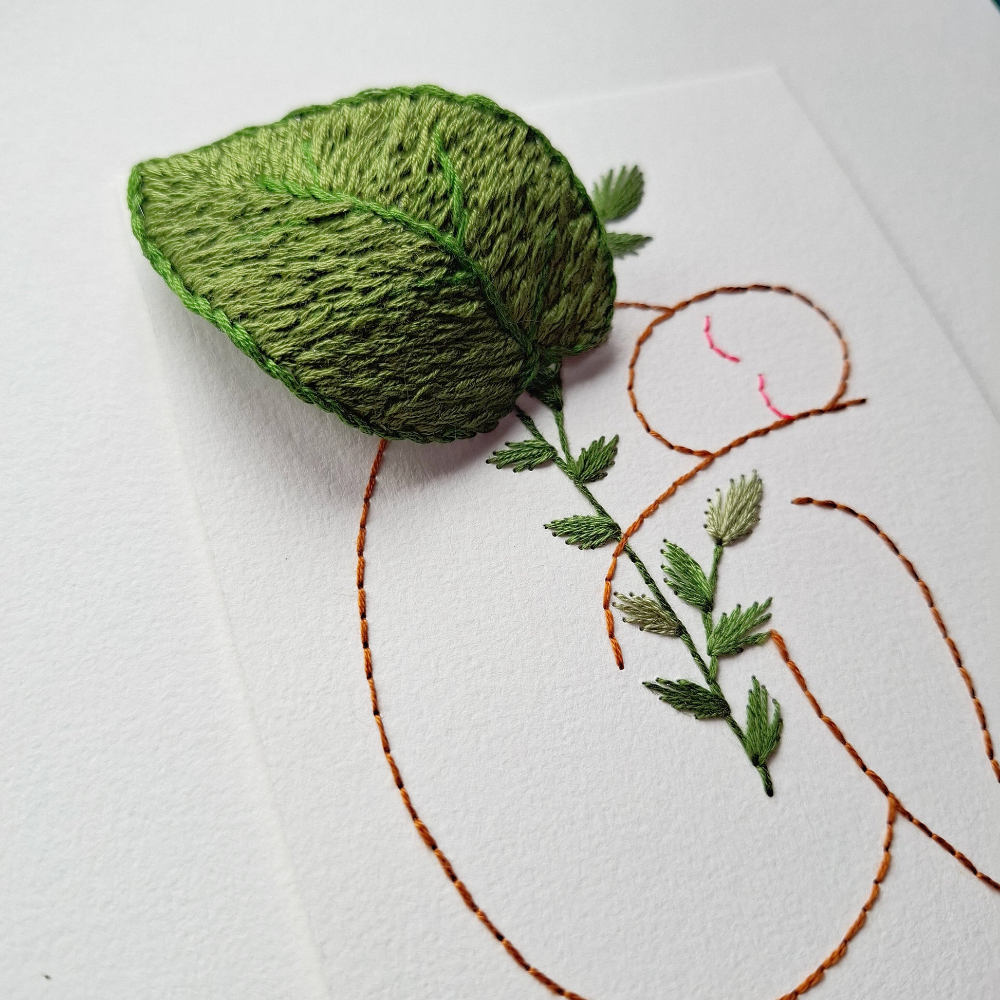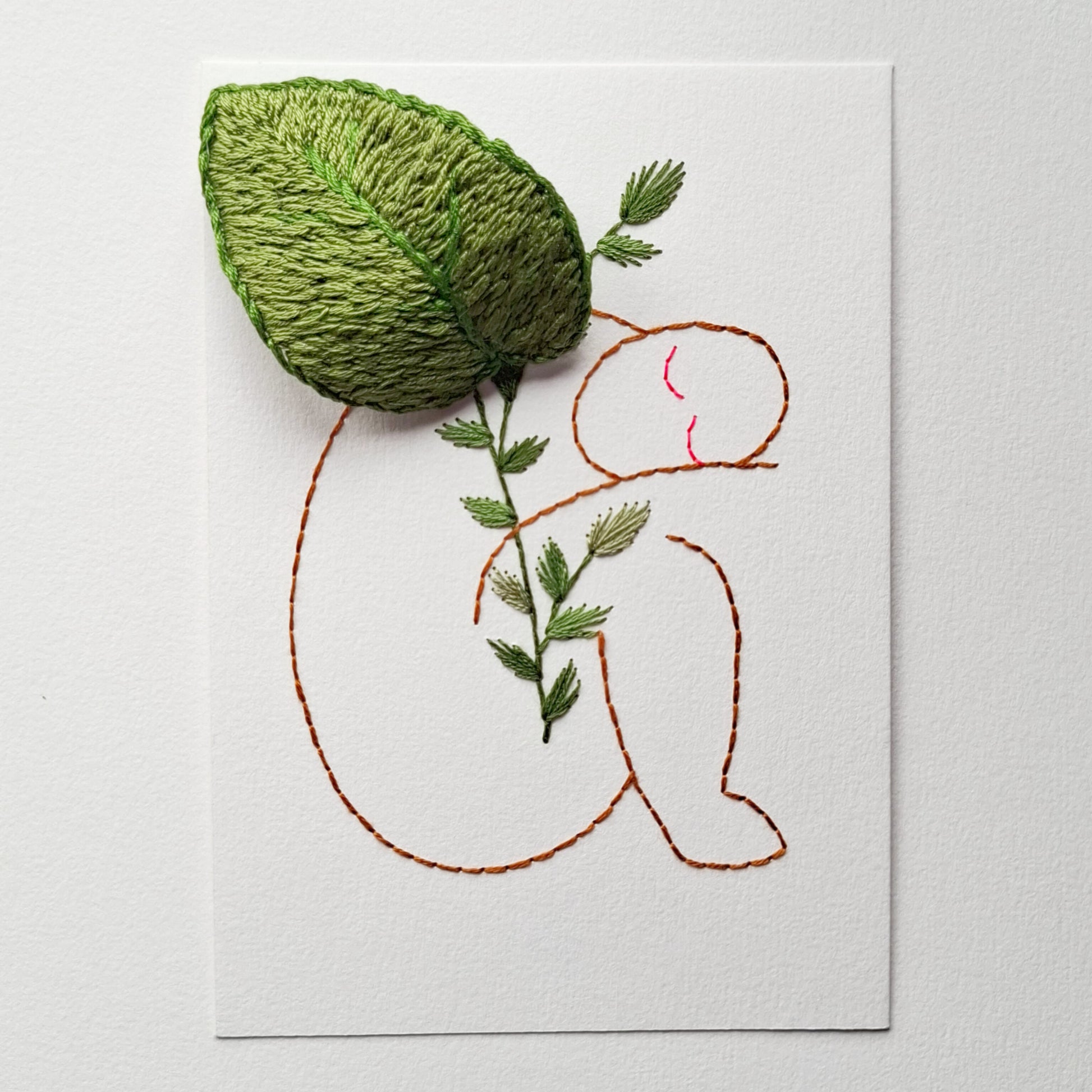 Broderie à la main sur papier avec des fils de coton - format carte postale.
