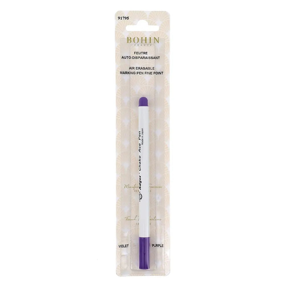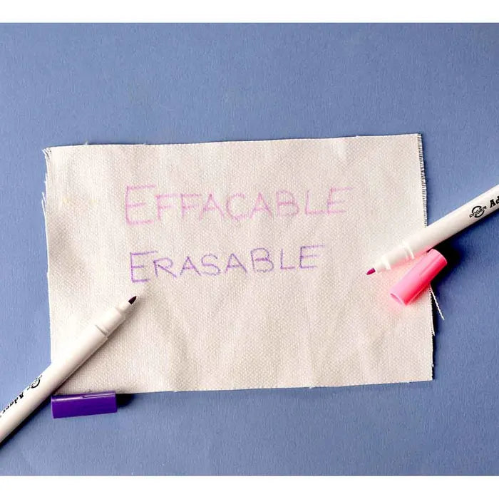 Ce marqueur auto-effaceur permet de tracer les lignes des patrons, les boutonnières, les poches et les plis, ainsi que les lignes de patchwork et de broderie.