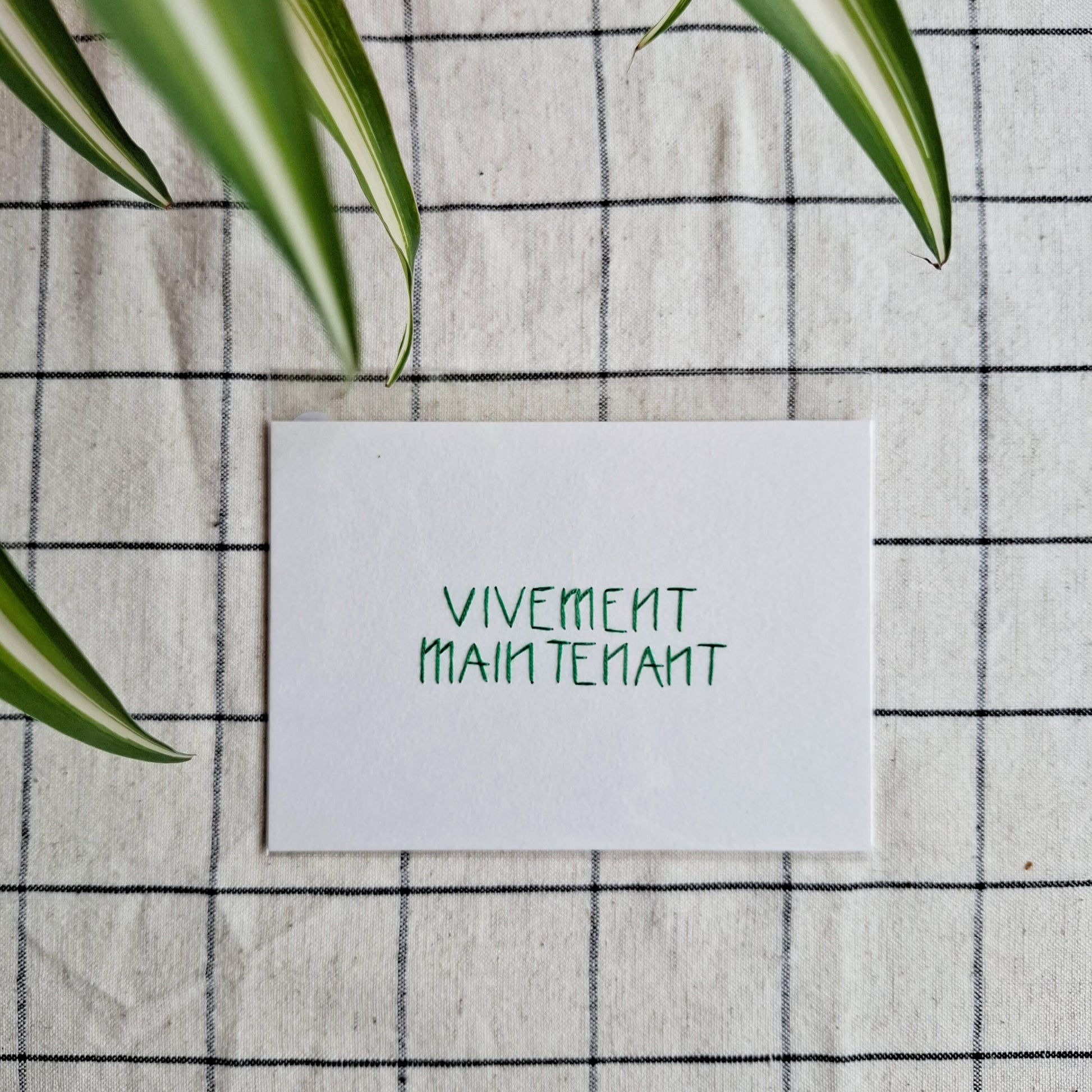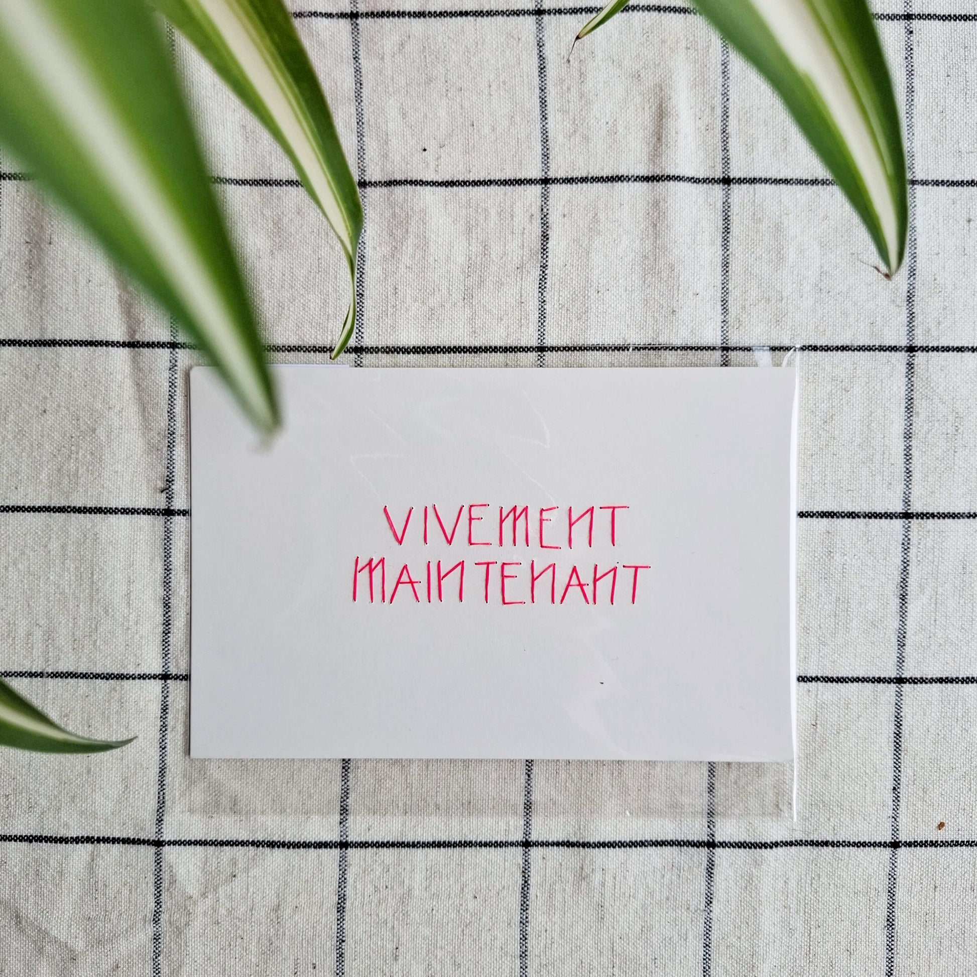 VIVEMENT MAINTENANT - Carte brodée